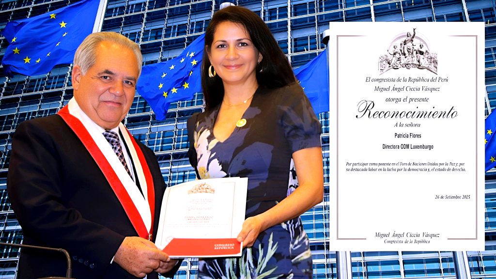 Patricia Flores es directora de la ODM en Luxemburgo y participo del Foro Mundial de Naciones Unidas por la Paz donde recibio un reconocimiento otorgado por el Congresista Miguel Angel Ciccia por su destacada labor en Luxemburgo como Directora de la ODM y en su faceta como actriz y modelo internacional.