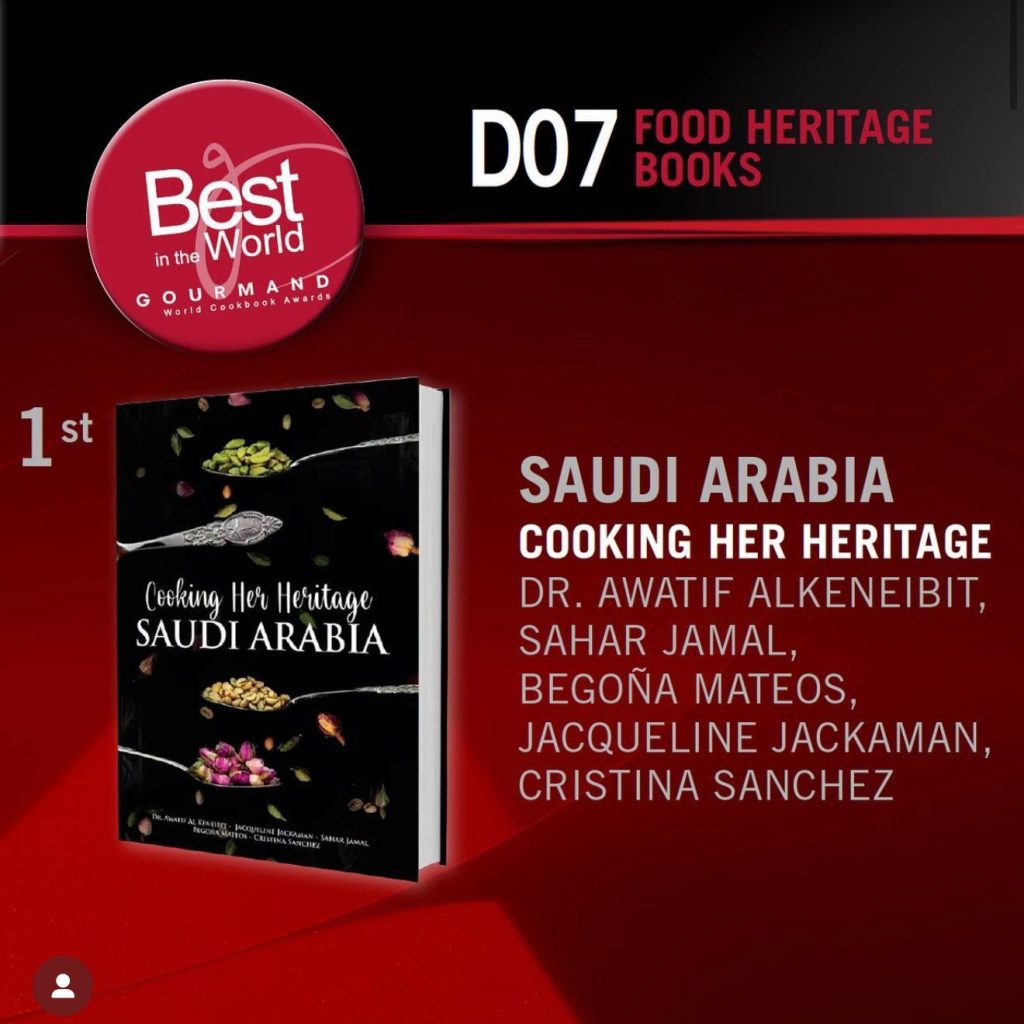 El libro de cocina tradicional titulado “Cocinando su Legado: Arabia Saudita” (Cooking Her Heritage: Saudi Arabia), una obra realizada por cinco coautoras, contó con la destacada representación de Jacqueline Jackaman en el festival. Jacqueline fue seleccionada por los Gourmand Awards para disertar sobre la creación del libro y compartir su profundo conocimiento de la gastronomía saudí. El evento también contó con la presencia del Embajador de Colombia en Arabia Saudita, Rayan El-Barkachi Aboutrabi, quien asistió en representación y apoyo a los autores colombianos galardonados.